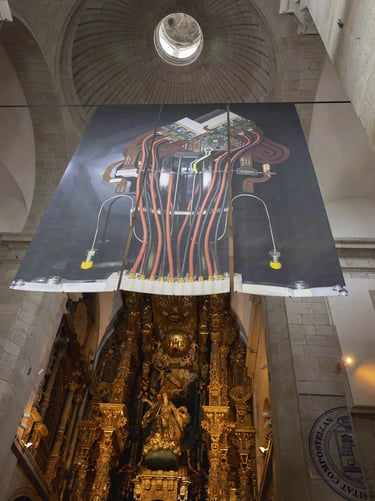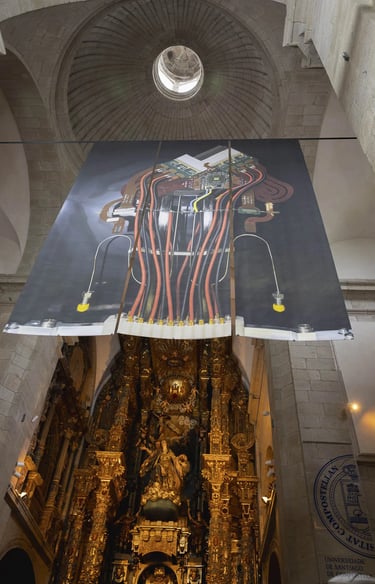 Armin Linke, Instruments of Vision, 2024, at Igrexa da Universidade in Santiago de Compostela, Spain. Photo: Manu Suárez.